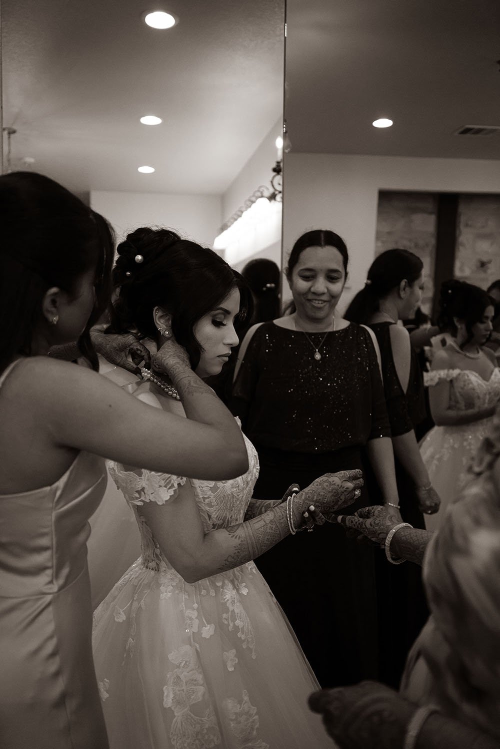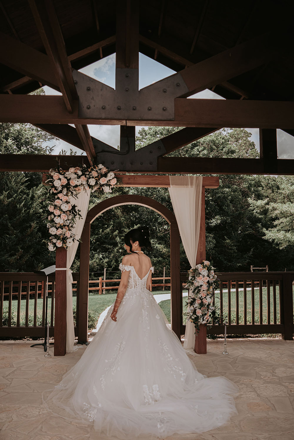 The morning unfolded in a sunlit room as Ashwini’s mother & sister helped her into a princess-style ballgown. Quiet moments with her younger sister offered a pause before the day began. Later, beneath a flower-draped wooden canopy, Ashwini & Ray exchanged private vows before joining loved ones for a cocktail hour and a ceremony filled with laughter, emotion, and the warmth of family.