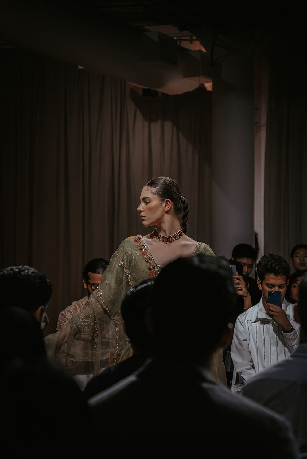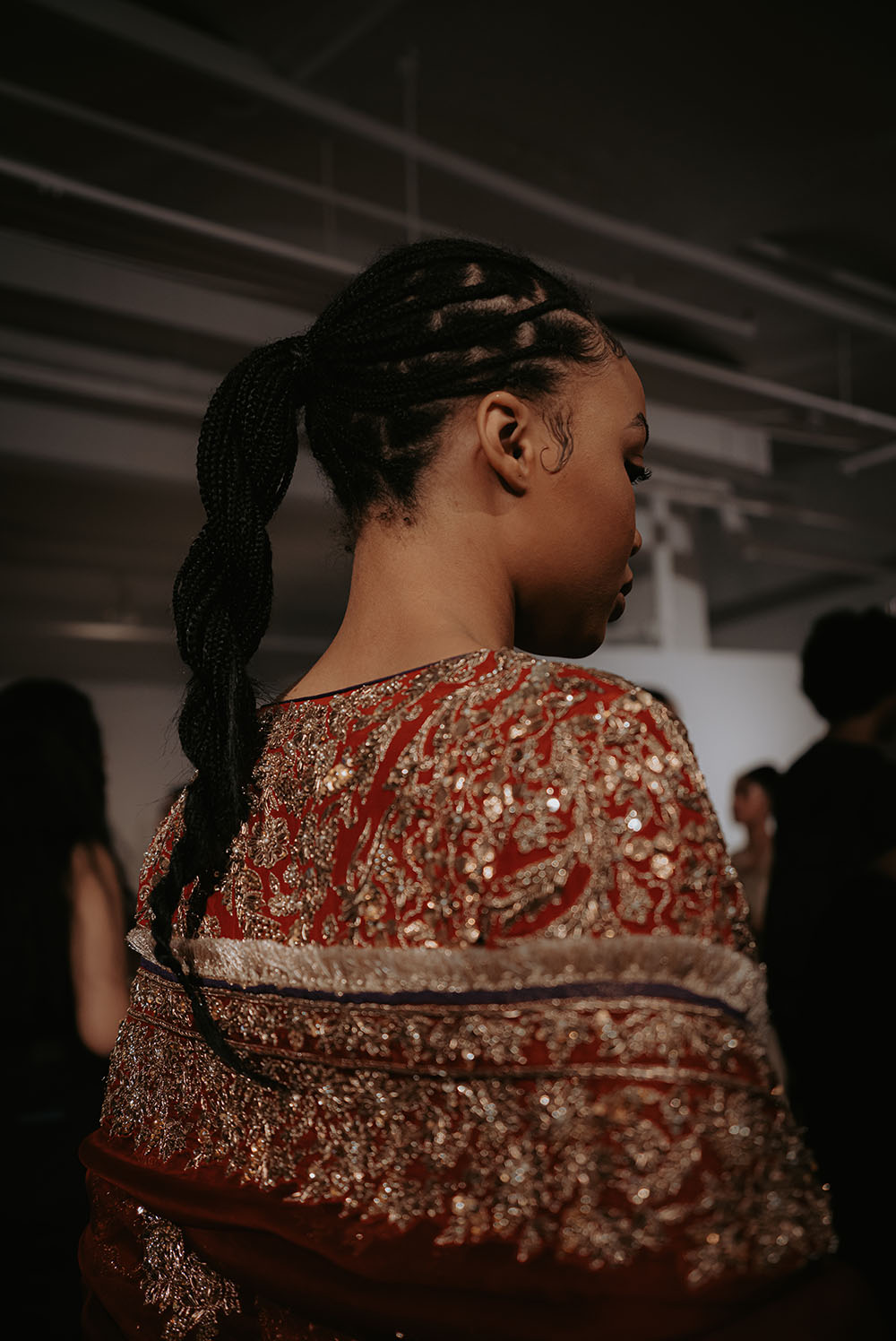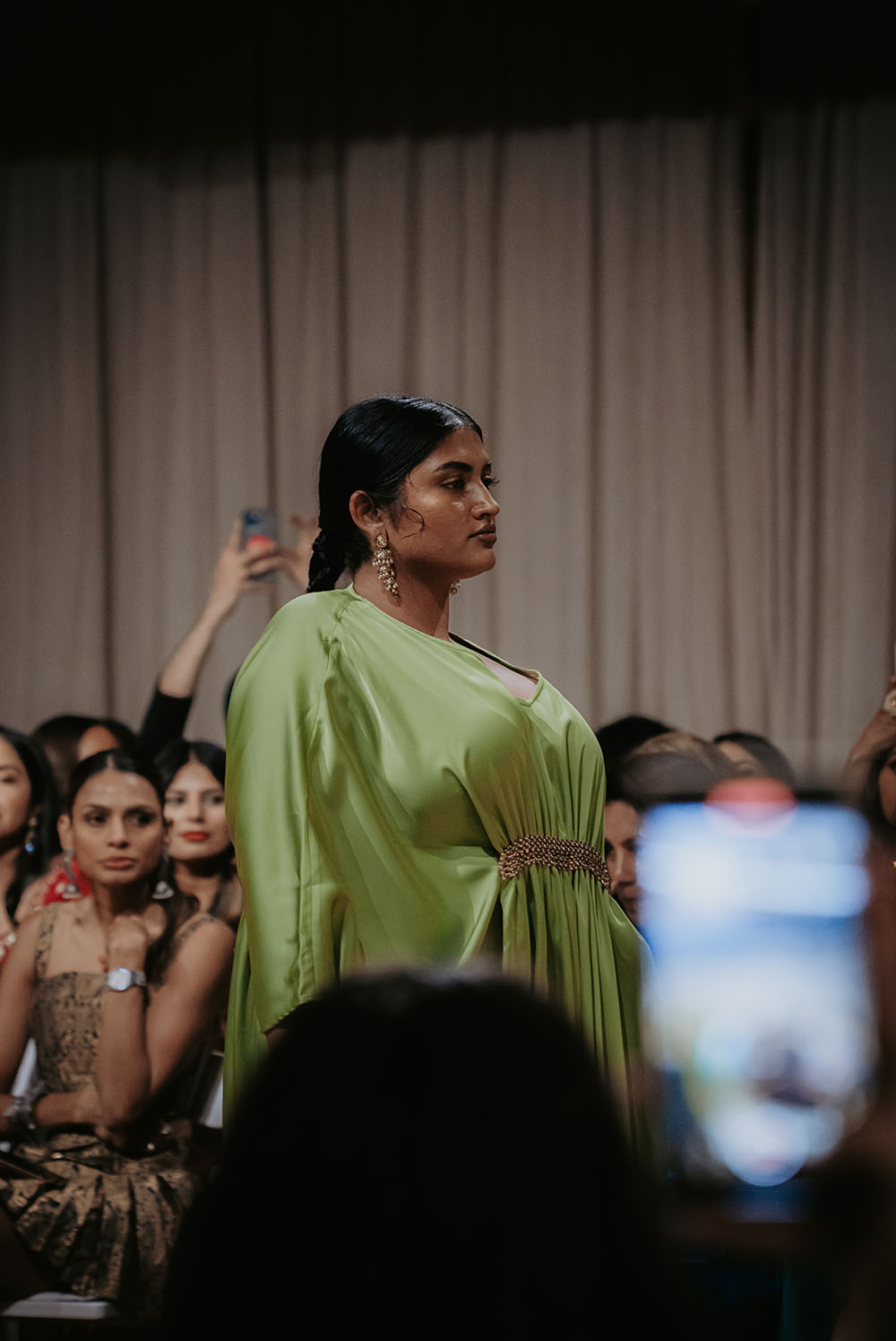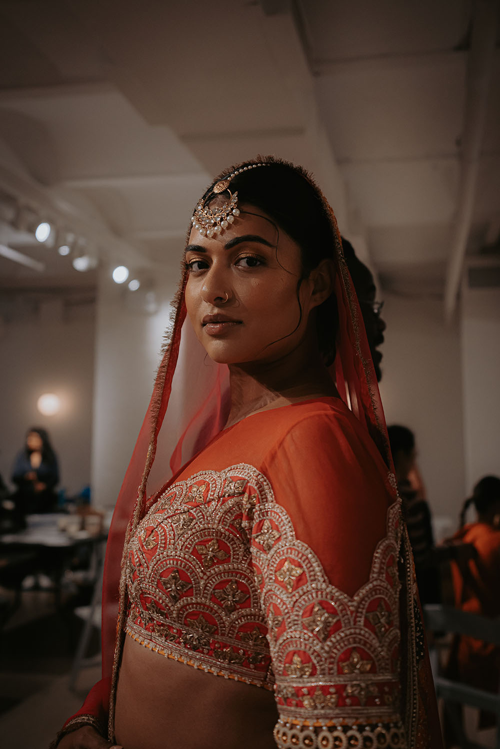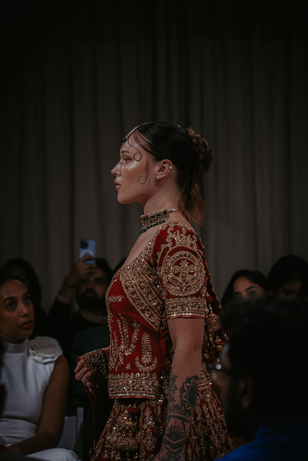 Captured just after final preparations, these intimate shots reveal confident energy of the models as they await their turn on the runway. It’s a powerful moment, where readiness meets anticipation, showcasing the grace and strength behind the artistry of South Asian Fashion.