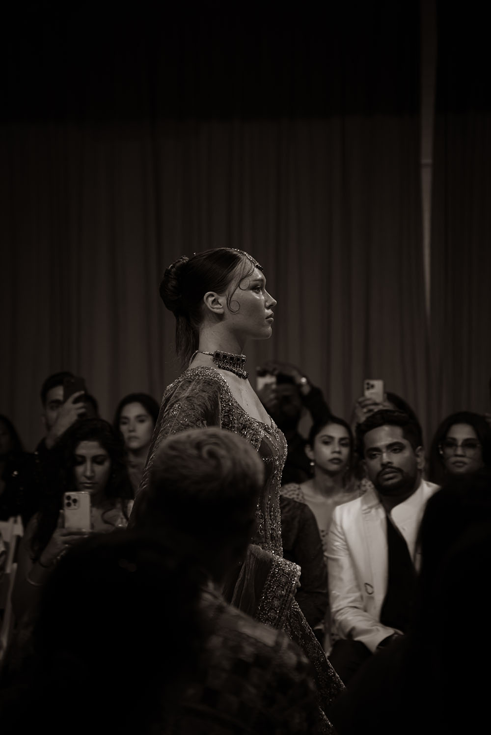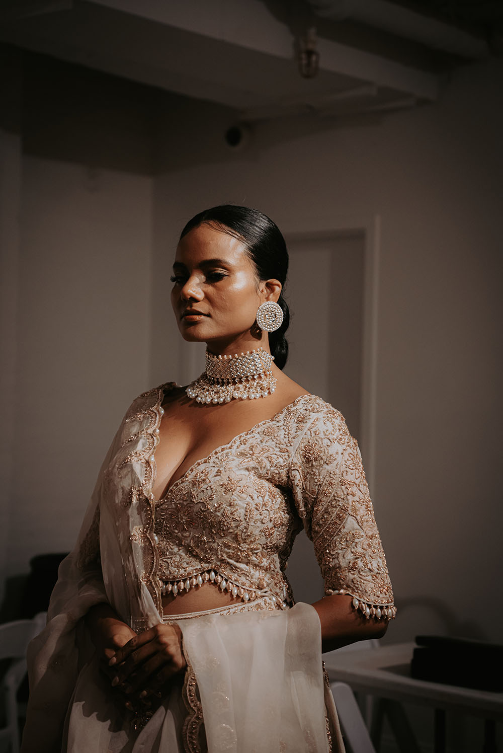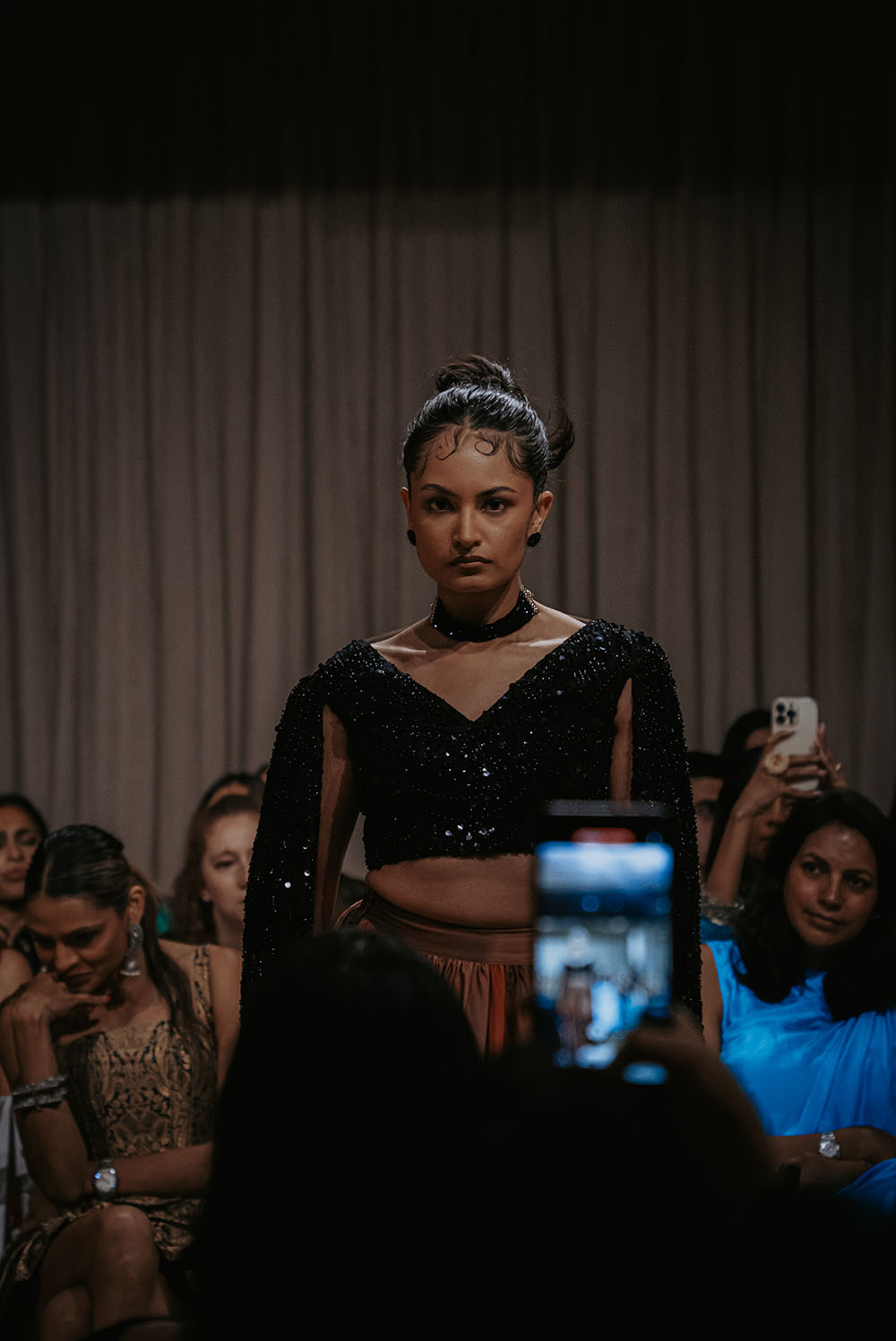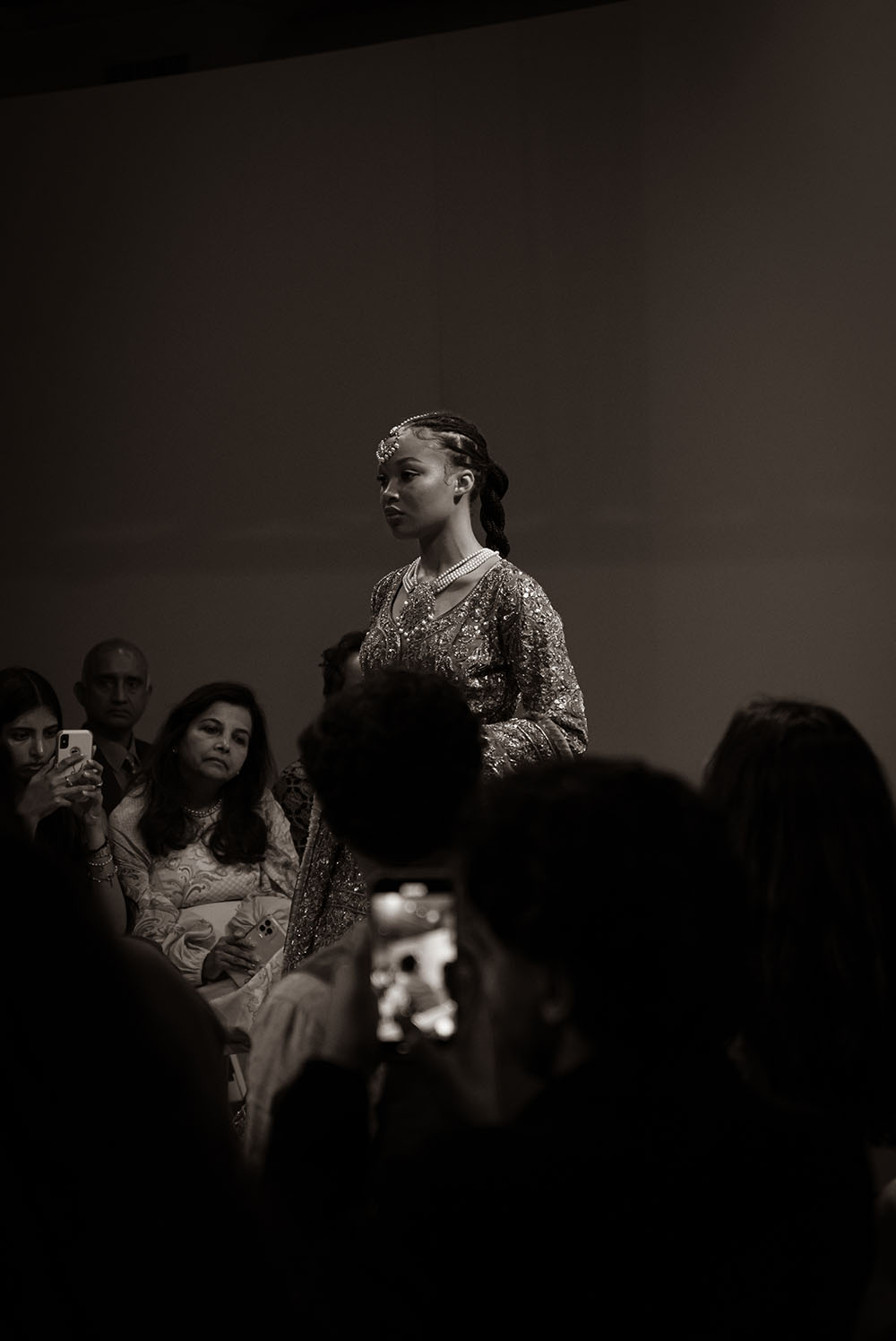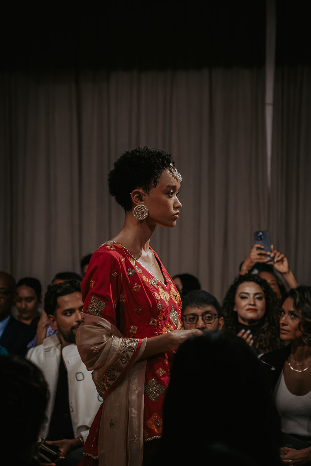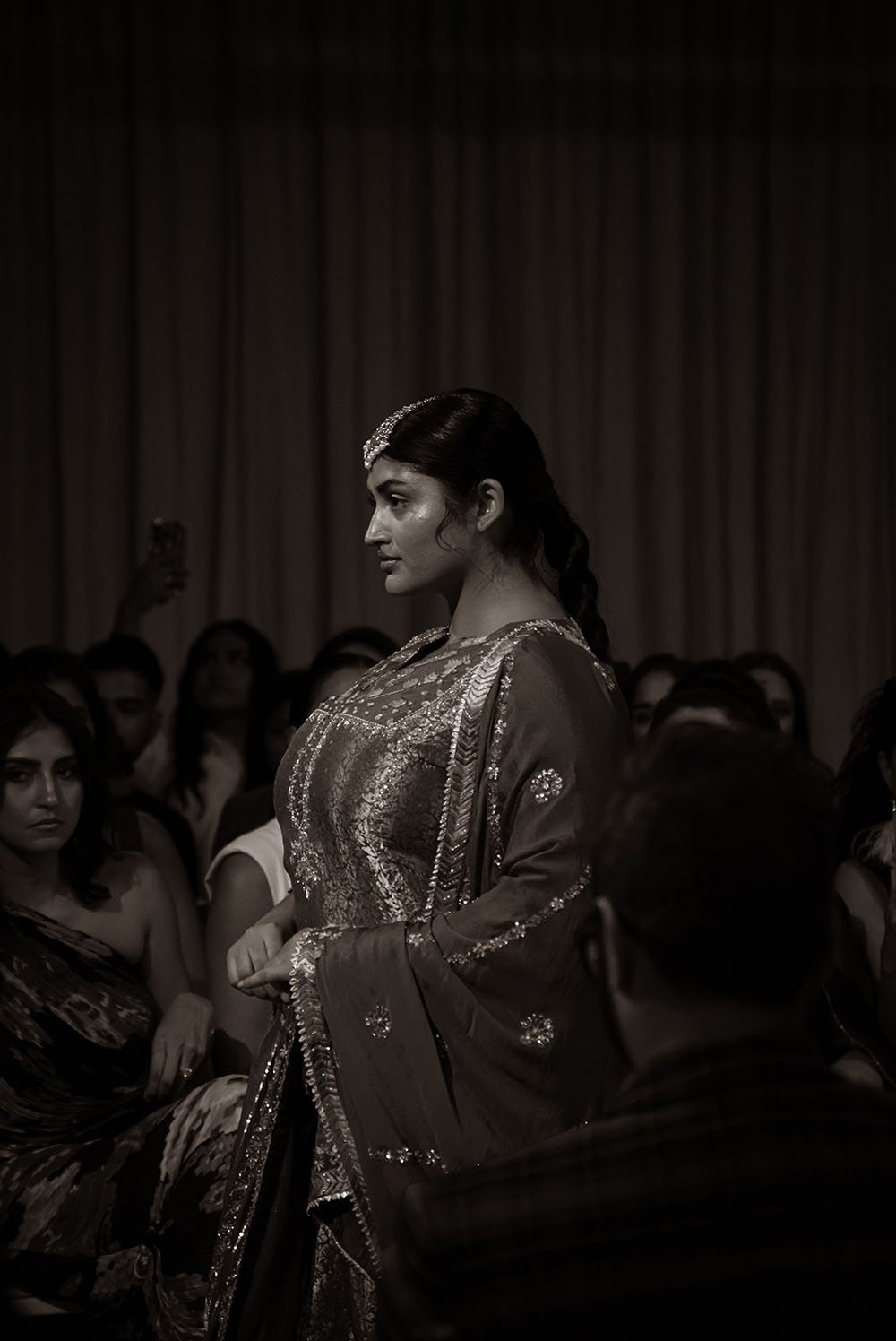 Captured just after final preparations, these intimate shots reveal confident energy of the models as they await their turn on the runway. It’s a powerful moment, where readiness meets anticipation, showcasing the grace and strength behind the artistry of South Asian Fashion.