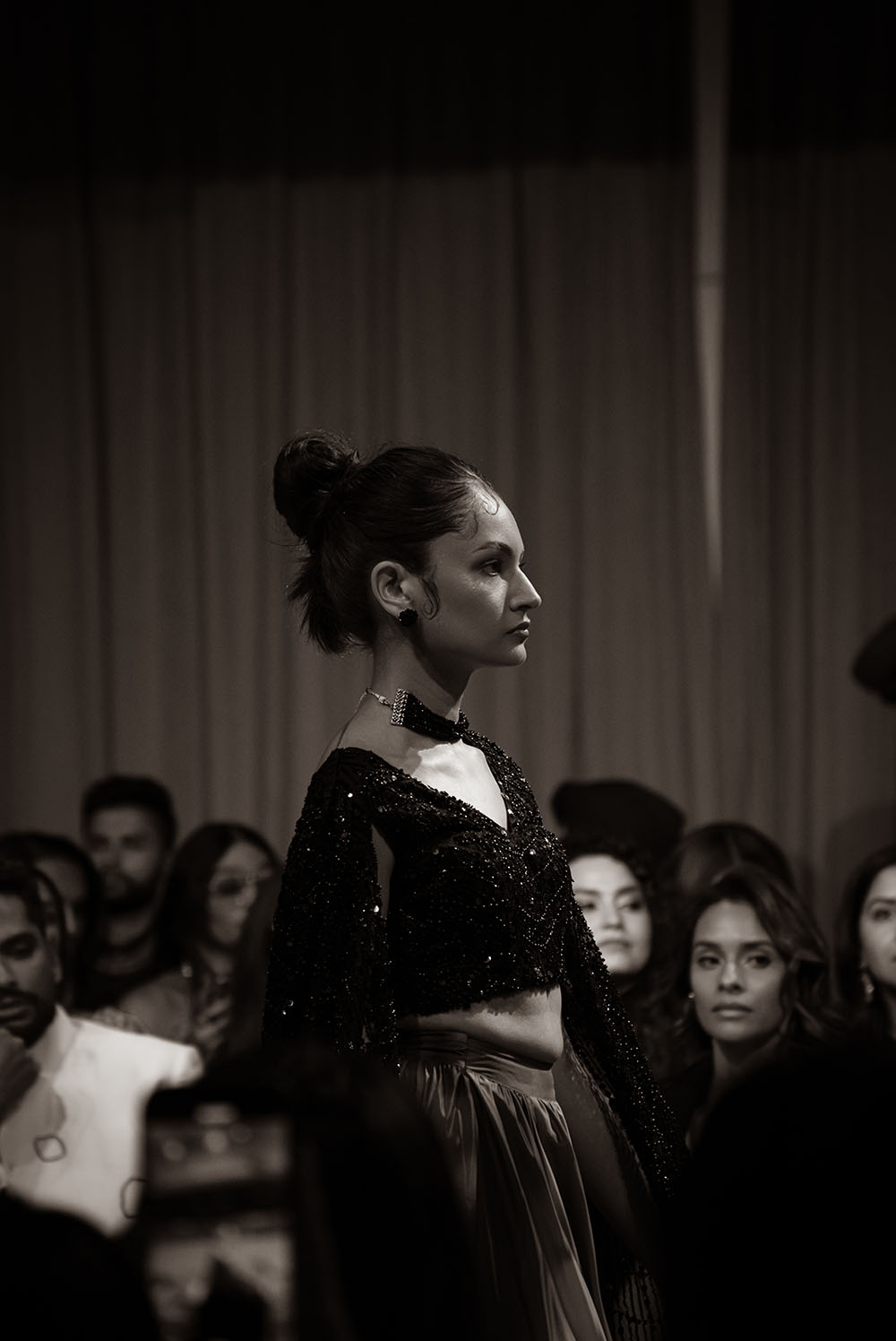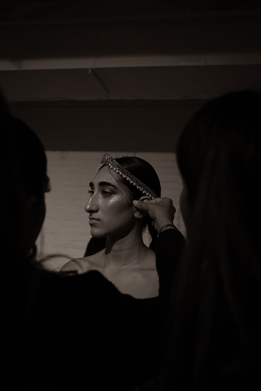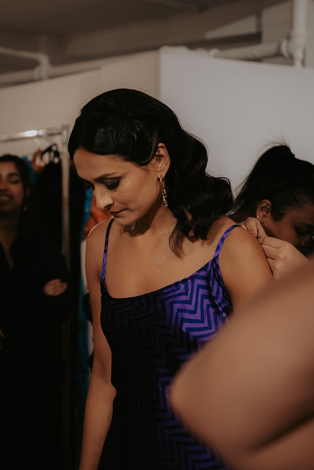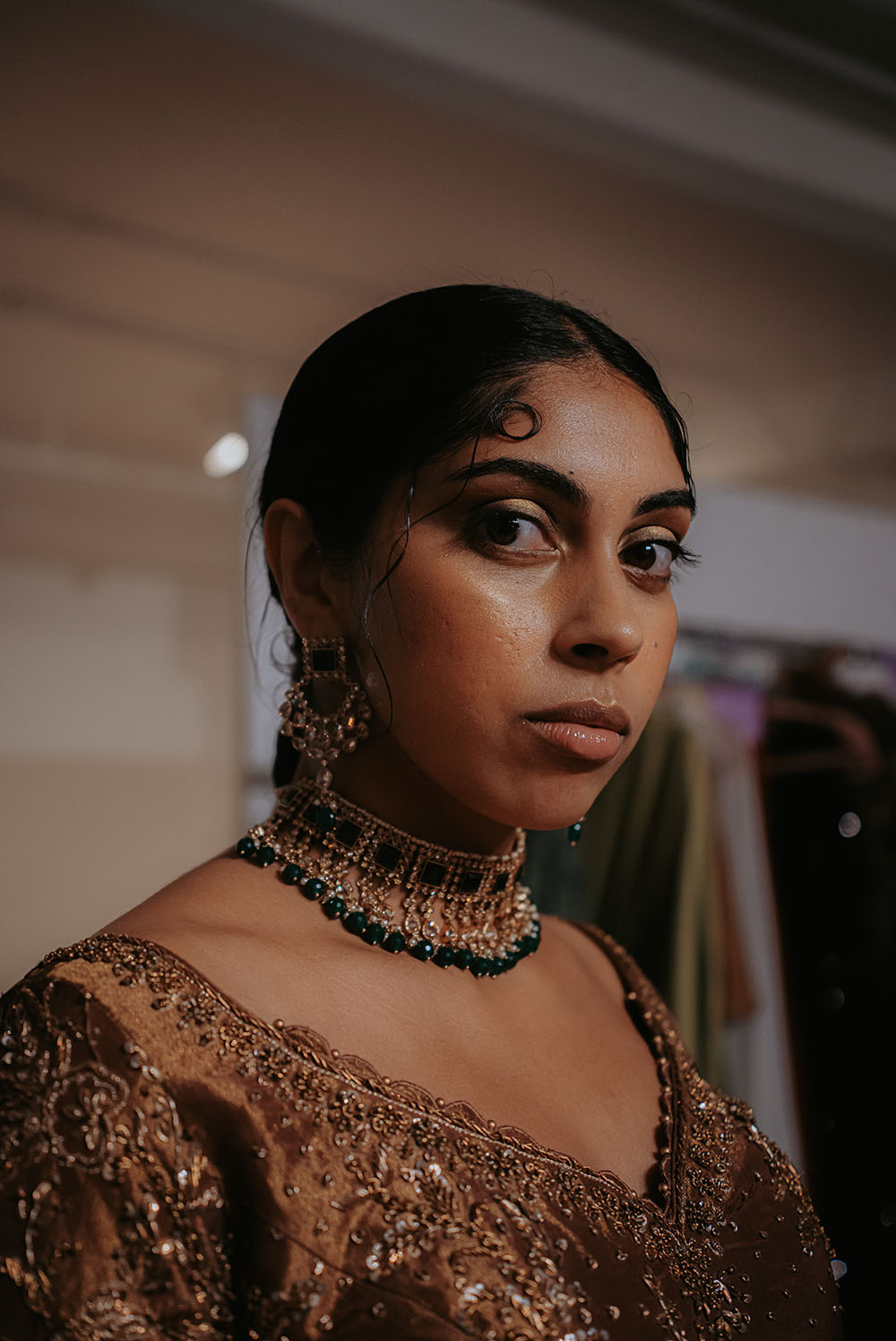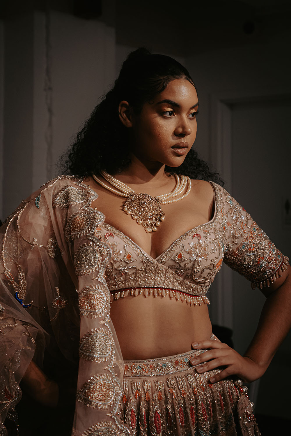 Captured just after final preparations, these intimate shots reveal confident energy of the models as they await their turn on the runway. It’s a powerful moment, where readiness meets anticipation, showcasing the grace and strength behind the artistry of South Asian Fashion.