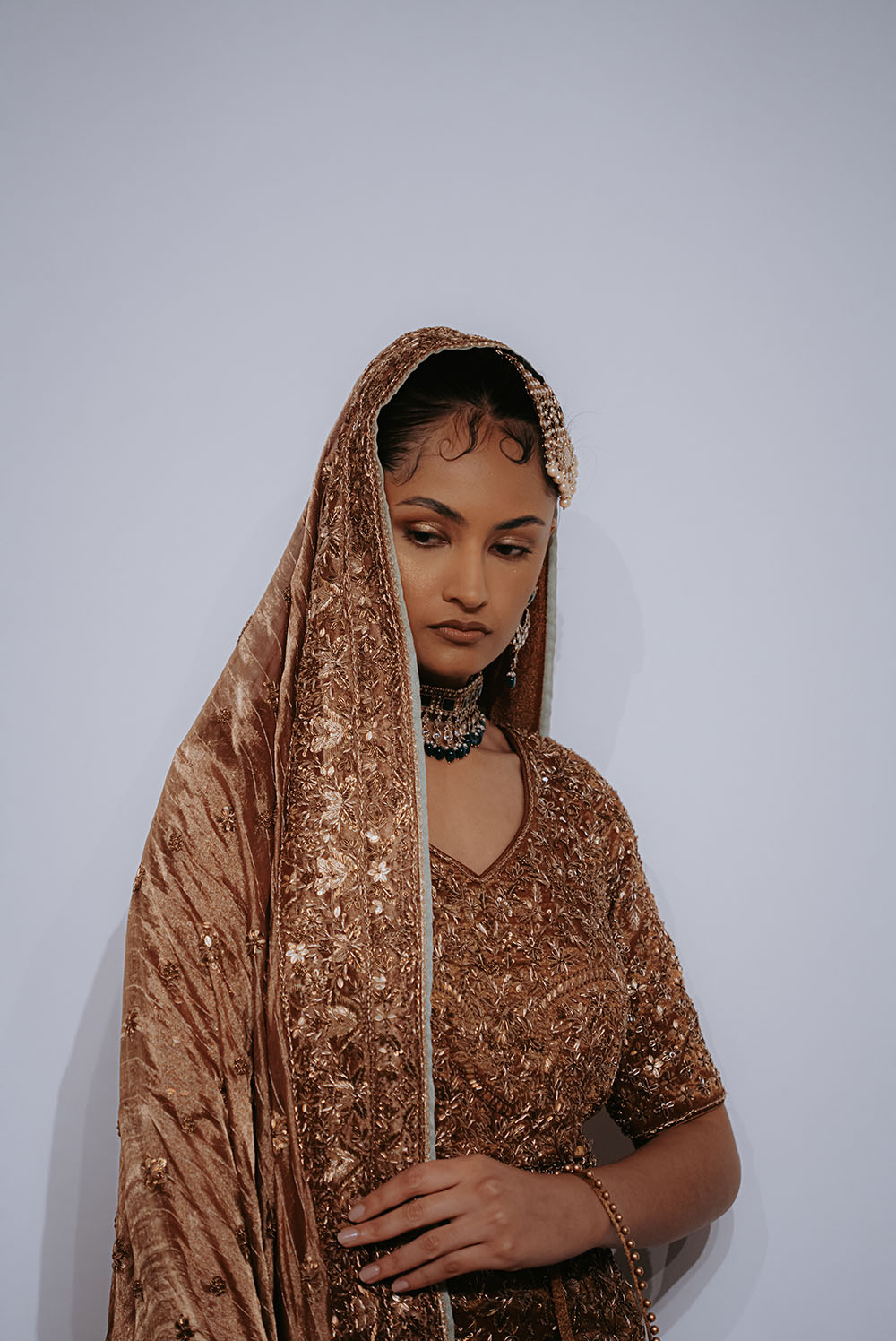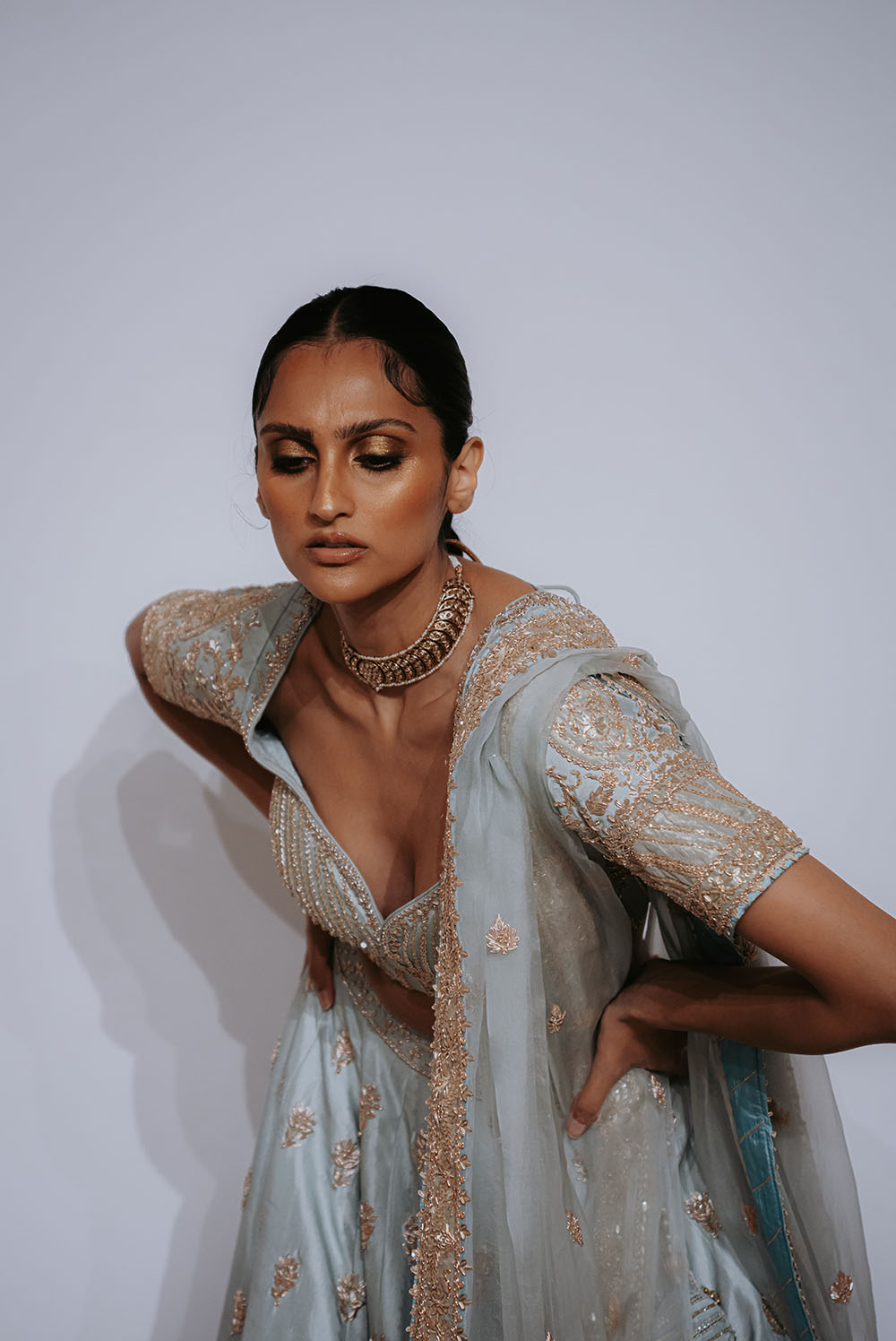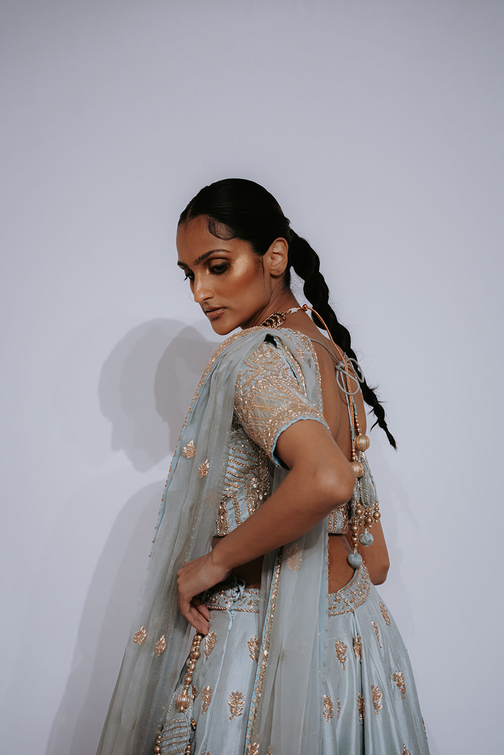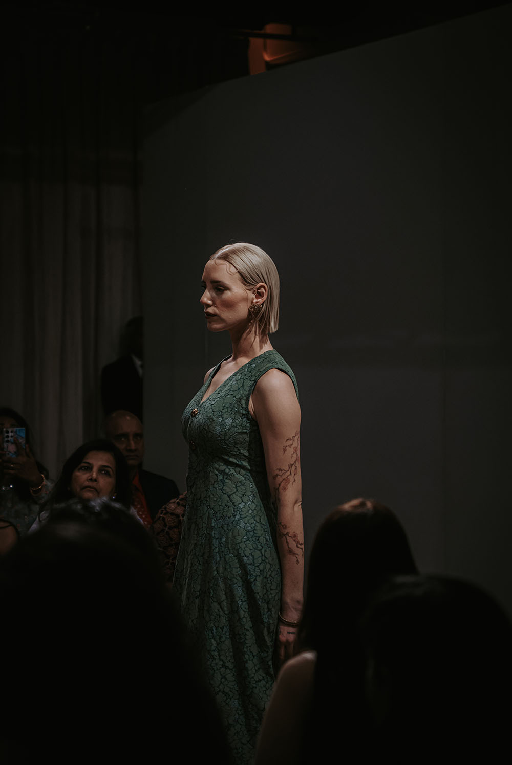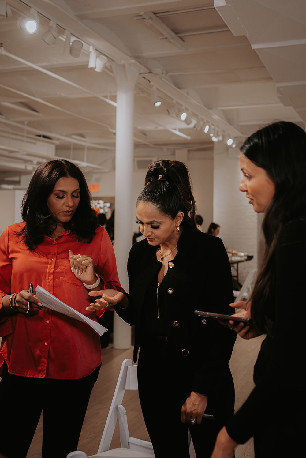 Captured just after final preparations, these intimate shots reveal confident energy of the models as they await their turn on the runway. It’s a powerful moment, where readiness meets anticipation, showcasing the grace and strength behind the artistry of South Asian Fashion.