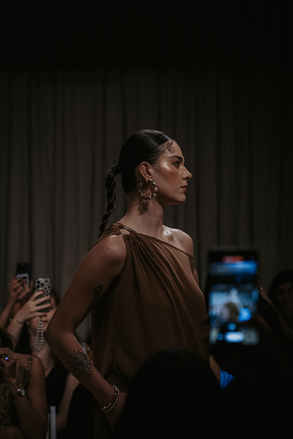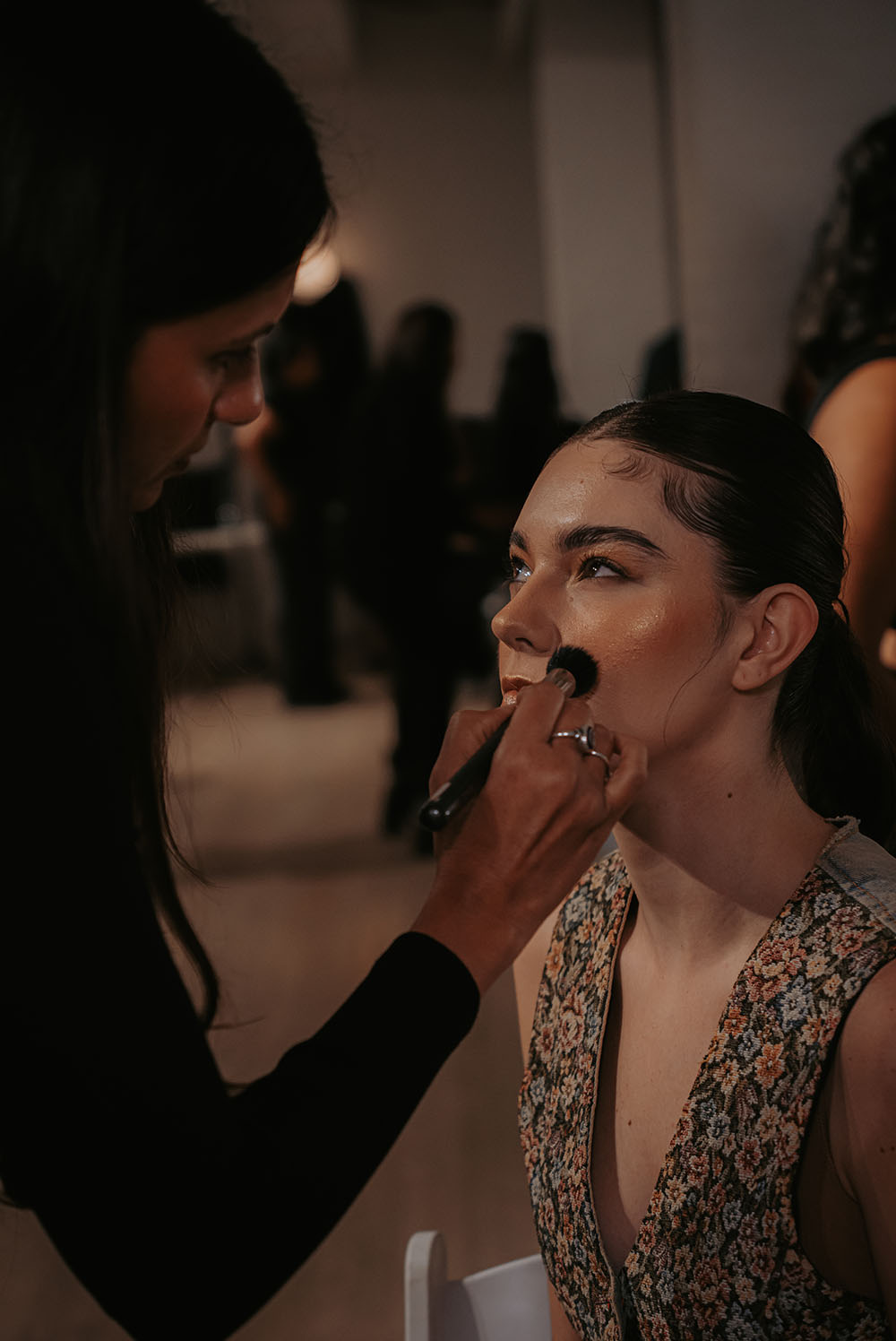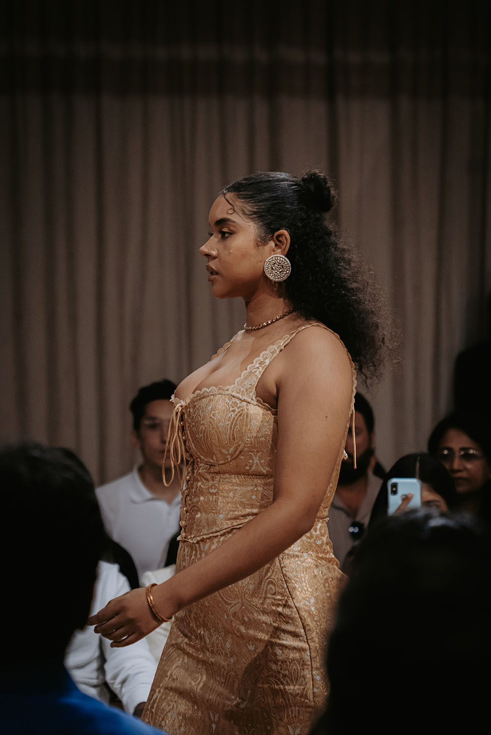 Backstage, the atmosphere is charged with quiet focus and creative energy as designers, stylists, and models prepare for the evening’s showcase. Every detail, from the precise application of makeup to the final adjustment of garments reflects a commitment to craftsmanship and cultural storytelling.